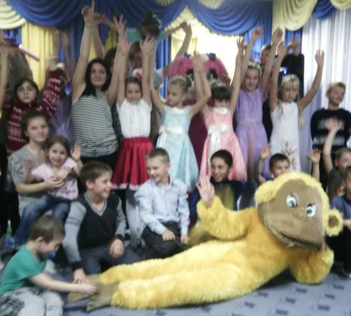 Воспитанники реабилитационного центра с удовольствием играли и танцевали с ростовыми куклами: Обезьянкой, Зайкой, Хрюшей, подпевали участникам коллектива «Весёлые нотки».